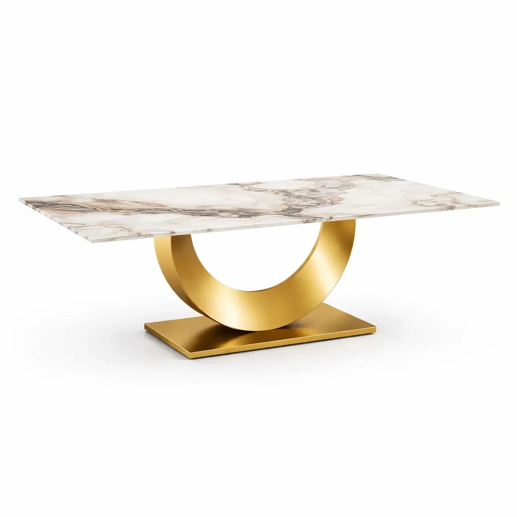 Materiali del prodotto: Piano in marmo naturale, base in acciaio inox dorato