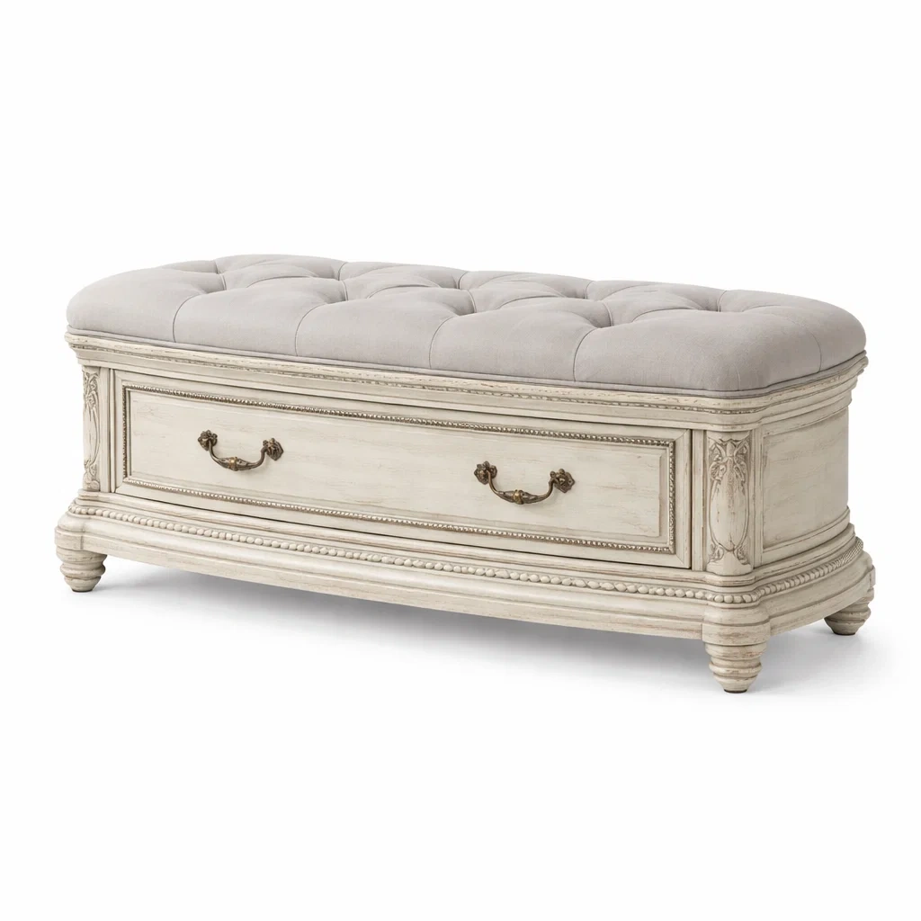Panca contenitore in legno e tessuto beige