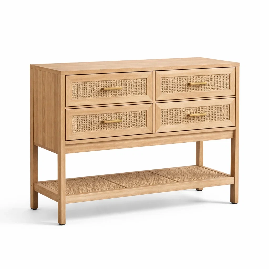 Componenti: 4 cassetti con maniglie in ottone. Ampio spazio di archiviazione.