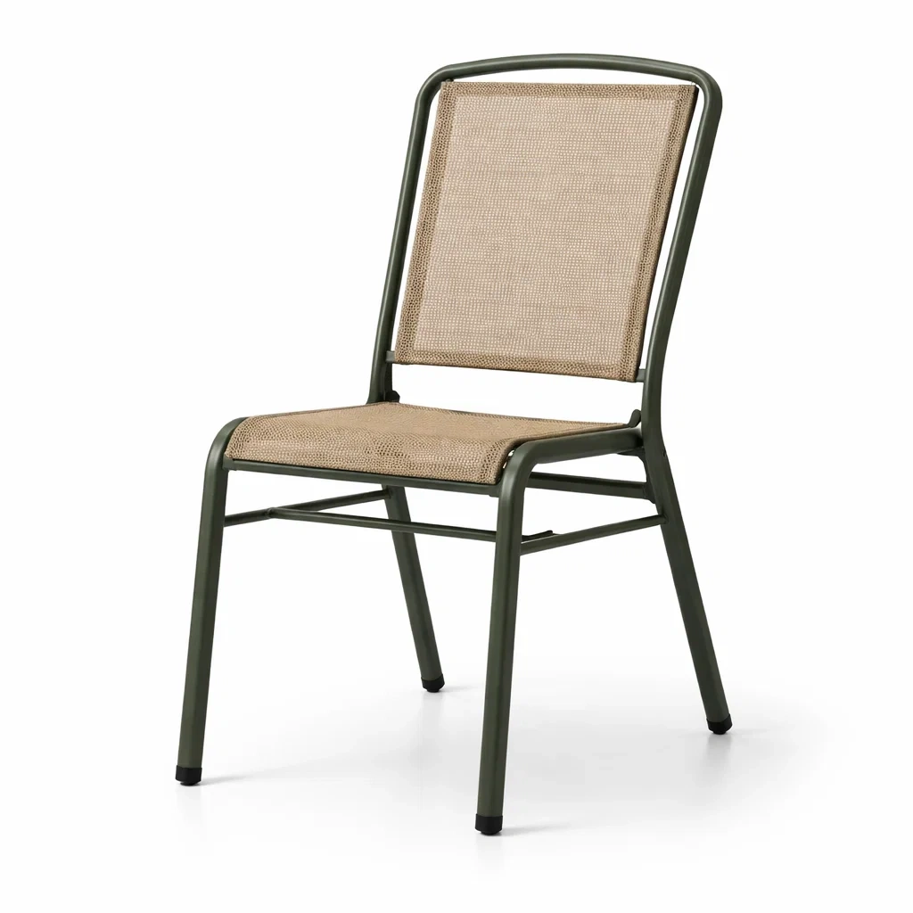 Sedia da pranzo da esterno in metallo con tessuto sintetico beige