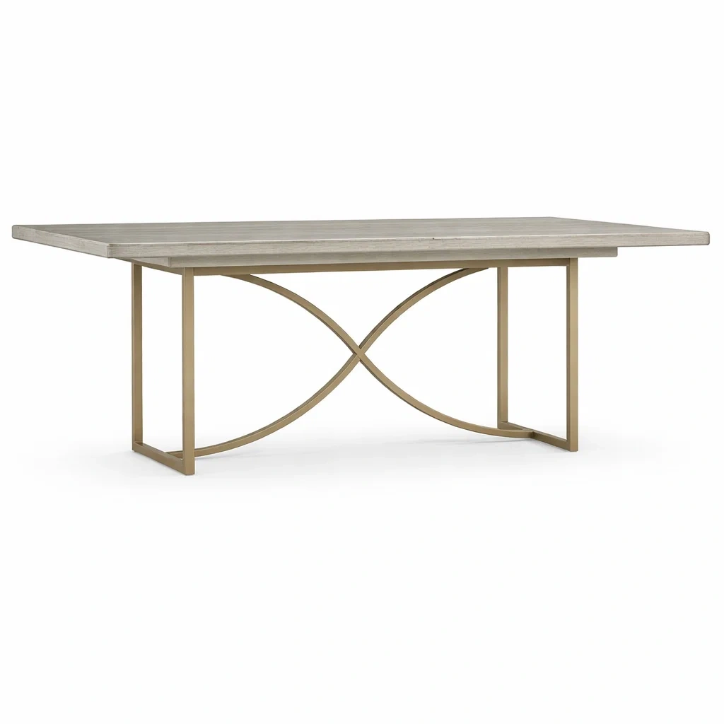 Tavolo da pranzo in rovere e metallo grigio dorato