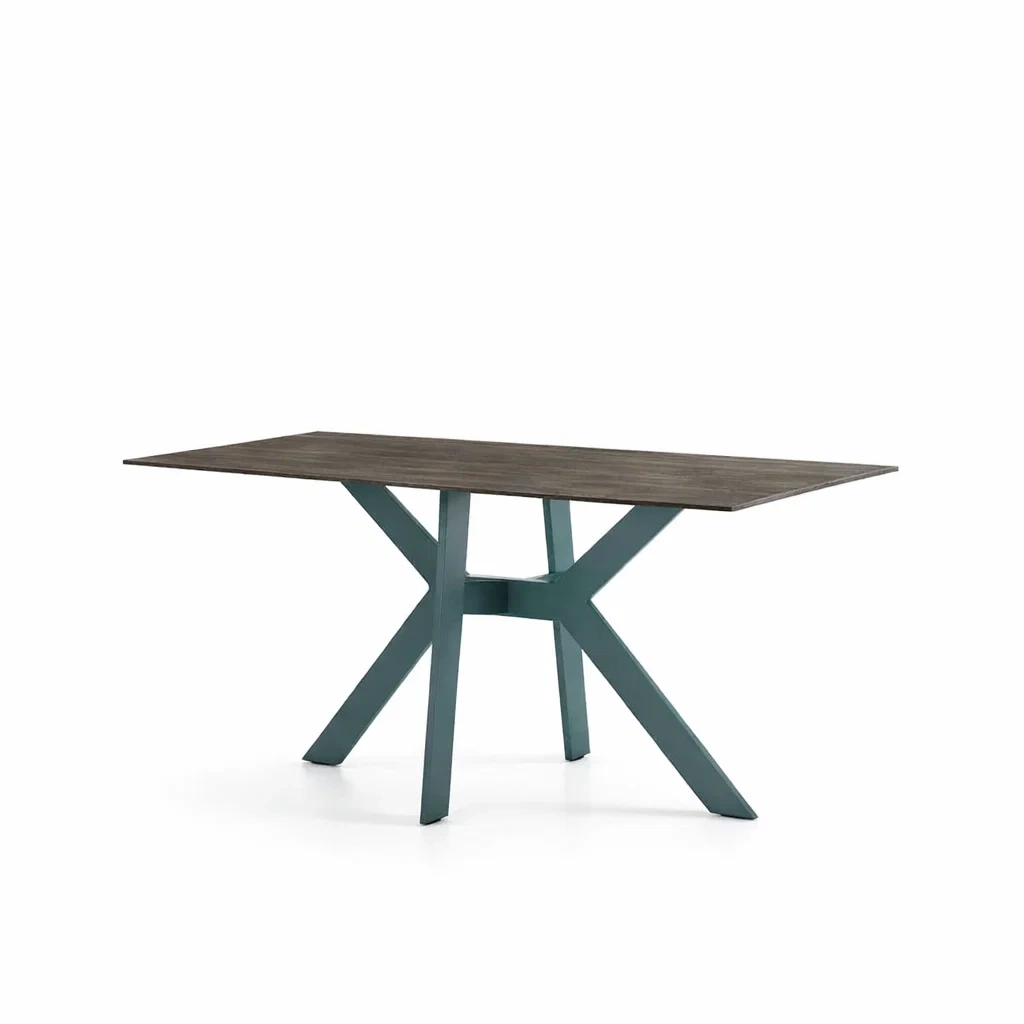 Tavolo da pranzo rettangolare in legno e metallo blu